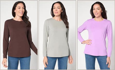 Denim & Co. Essentials Heavenly Jersey 3-Pack Round Neck Tops, Size X-Large, Rustbn/Ppya/Van