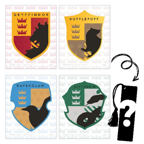 TRENDYPRINT Harry Potter - Hogwarts Crests - Gryffindor Hufflepuff Slytherin Ravenclaw Wall Art - UNFRAMED Set Of 4 - Includes A Collectible Wizarding