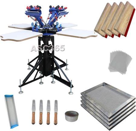 Intbuying 4 Color 4 Station Screen Printing Machine Press With T-Shirt Screen Printing Materials Kit