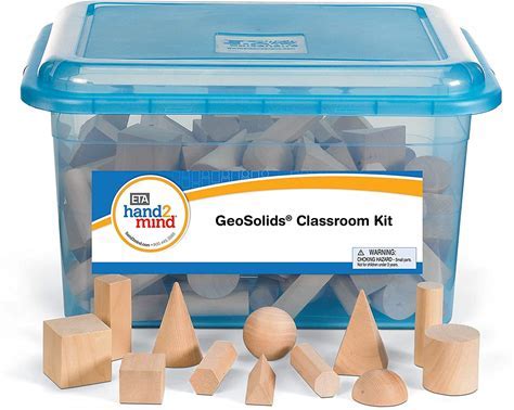 Hand2mind Wood Geometric Solid Blocks, 3D Shapes, Classroom Kit (Set Of 96)