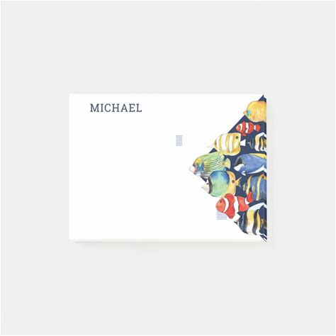 Colorful Watercolor Marine Fish Personalized Name Post-It Notes