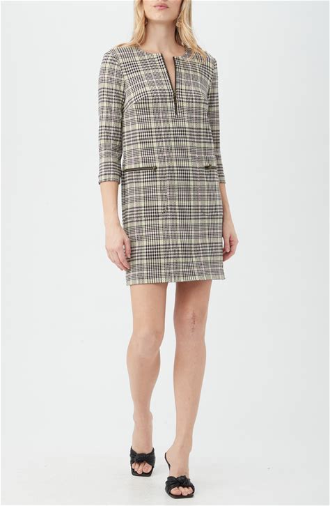 Trina Turk Venda Plaid Three-Quarter Sleeve Shift Dress - Gray - Mini Dresses Size Medium