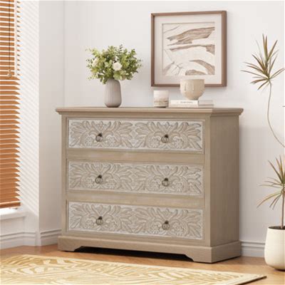 Loegan Wooden Dresser With 3 Drawers & Floral Carved Accents 31.8 H X 39.75 W X 13.8 D In Brownwood