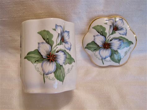 Royal Worcester Porcelain Trinket Box: Ontario White Trillium Floral, Gold Trim